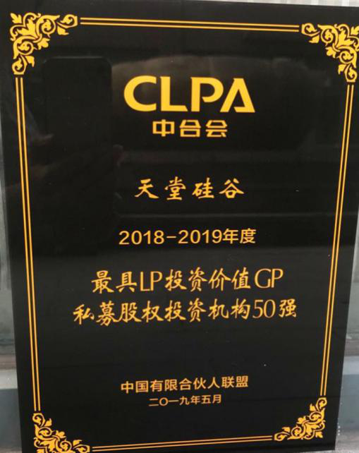 天堂硅谷憑借在投資領域的優異業績以及在科技創新領域的卓越投資實力,斬獲“CLPA2018-2019年度最具LP投資價值GP私募股權投資機構50強”、“LPA2018-2019年度科技創新投資20強”雙料大獎。